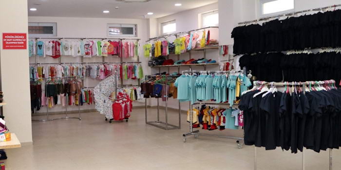 Kültür Merkezi'nin alt katında gıda, temizlik ve giysi reyonlarıyla