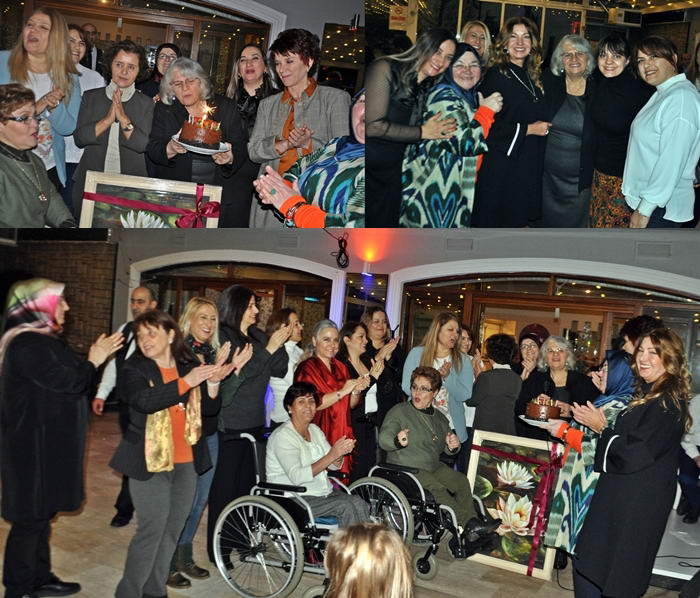 aynı zamanda doğum günü olan Necla Çağlayan’a yaş günü pastası keserek gecenin sürprizini