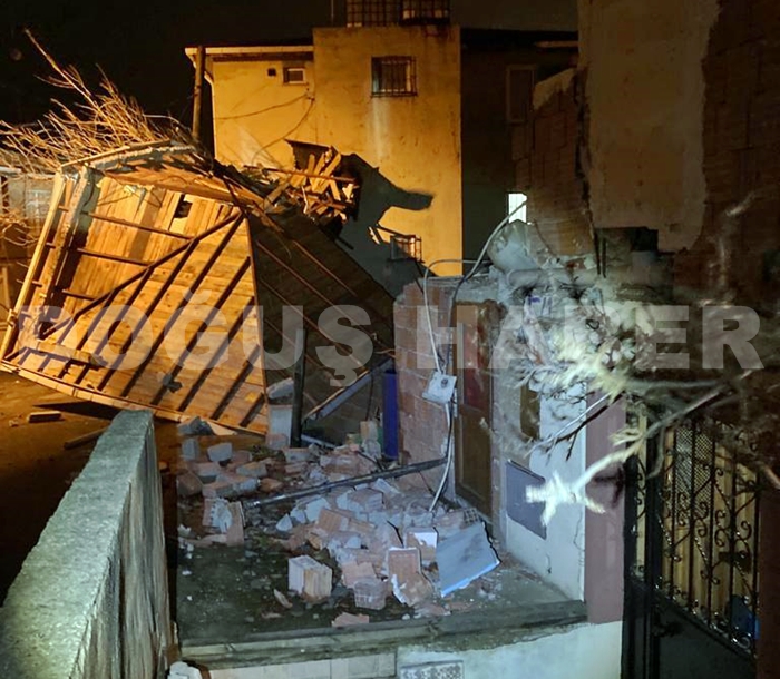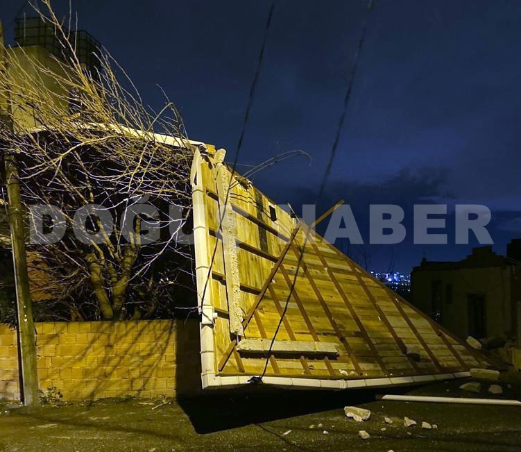 Hünkartepe Mevkiinde de bir evin çatısı uçtu. Kazada can kaybı olmazken, maddi hasar büyük.