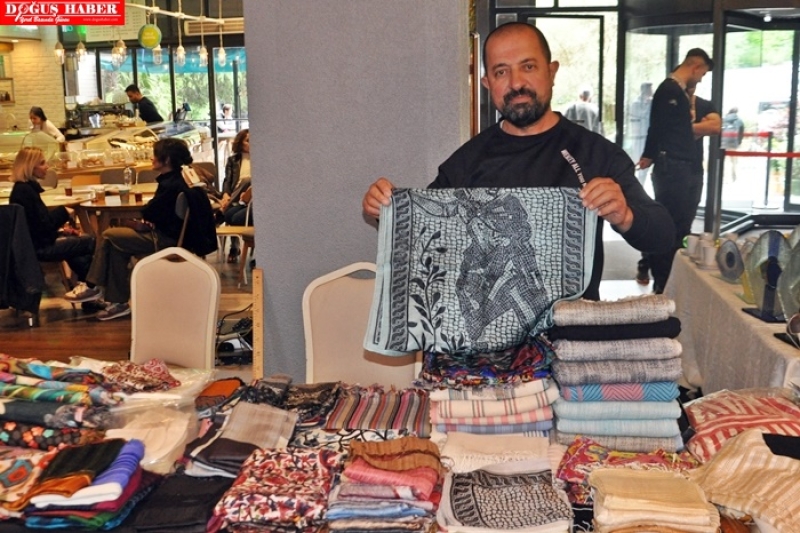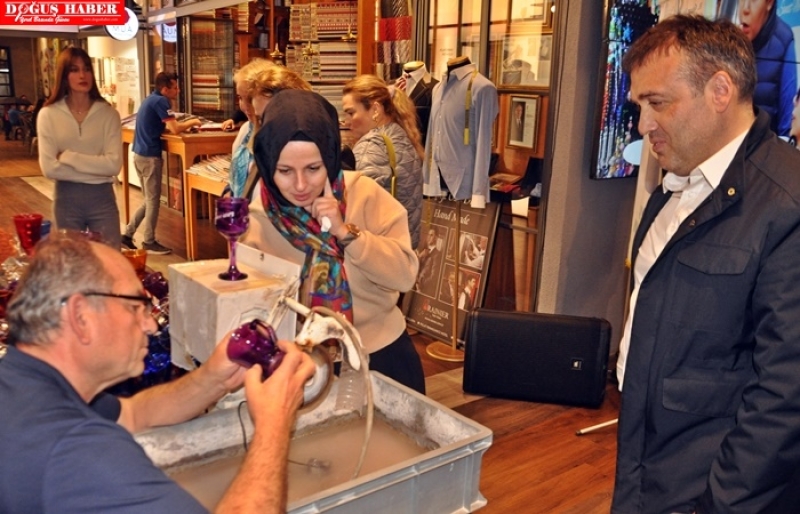 Turan, Hatay Antakya’dan cam şenliği için gelen İpek Dokumacı Yılmaz Büyükaşık’a
