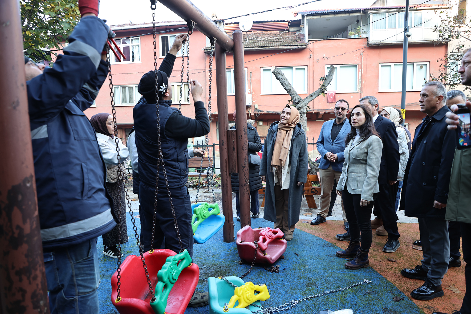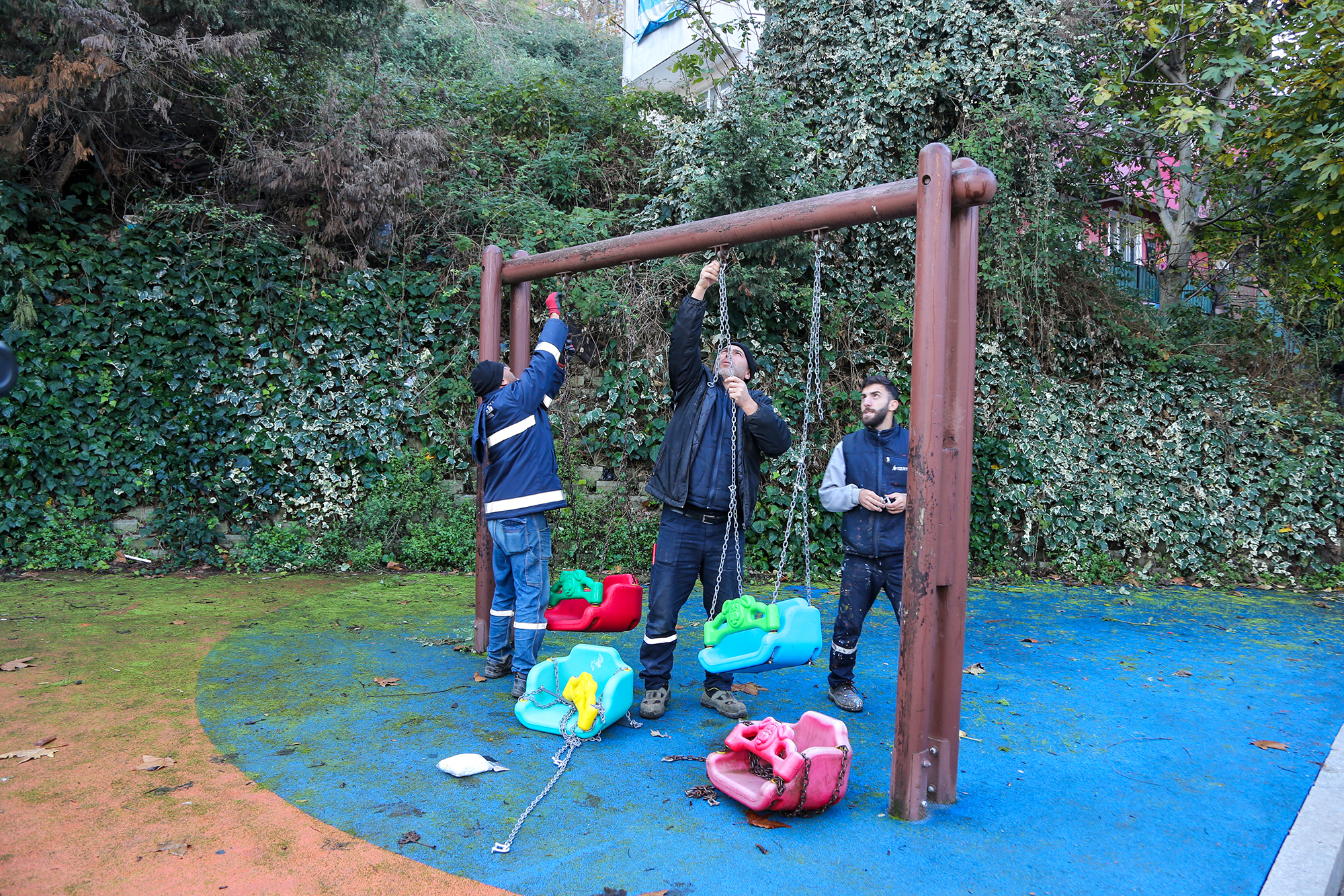 canlı bir görünüme kavuşturulurken, salıncak değişimleri ve kauçuk zemin