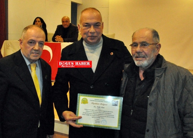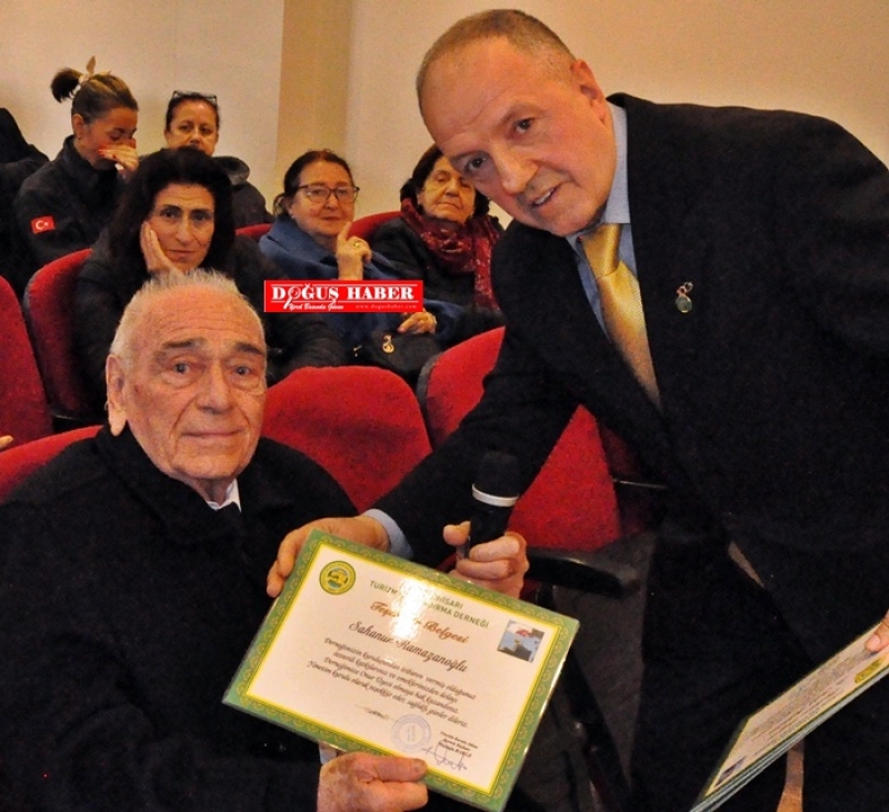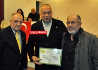 belgesi takdim etti. Teşekkür belgesi için derneğe teşekkür eden Saha Nur