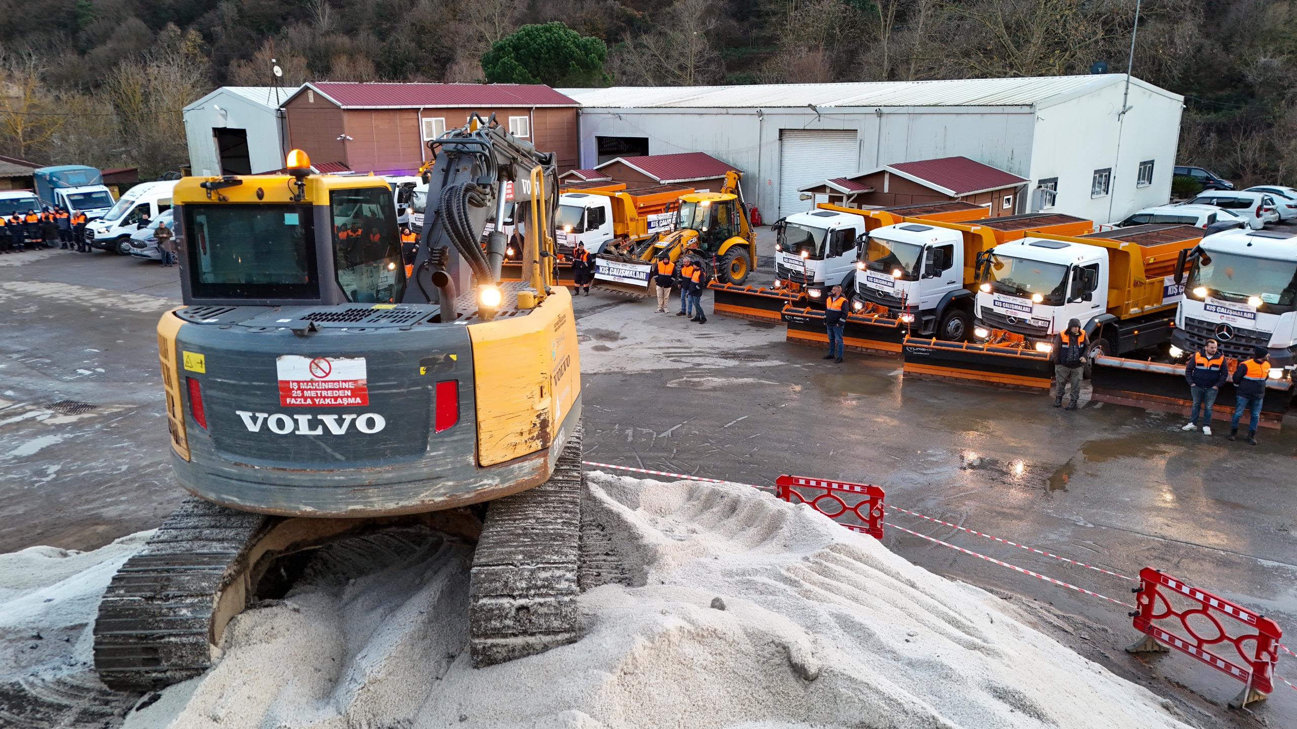 çalışma arkadaşımızla kış sezonuna hazırız. 4 bin ton tuz stokumuzla kar küreme