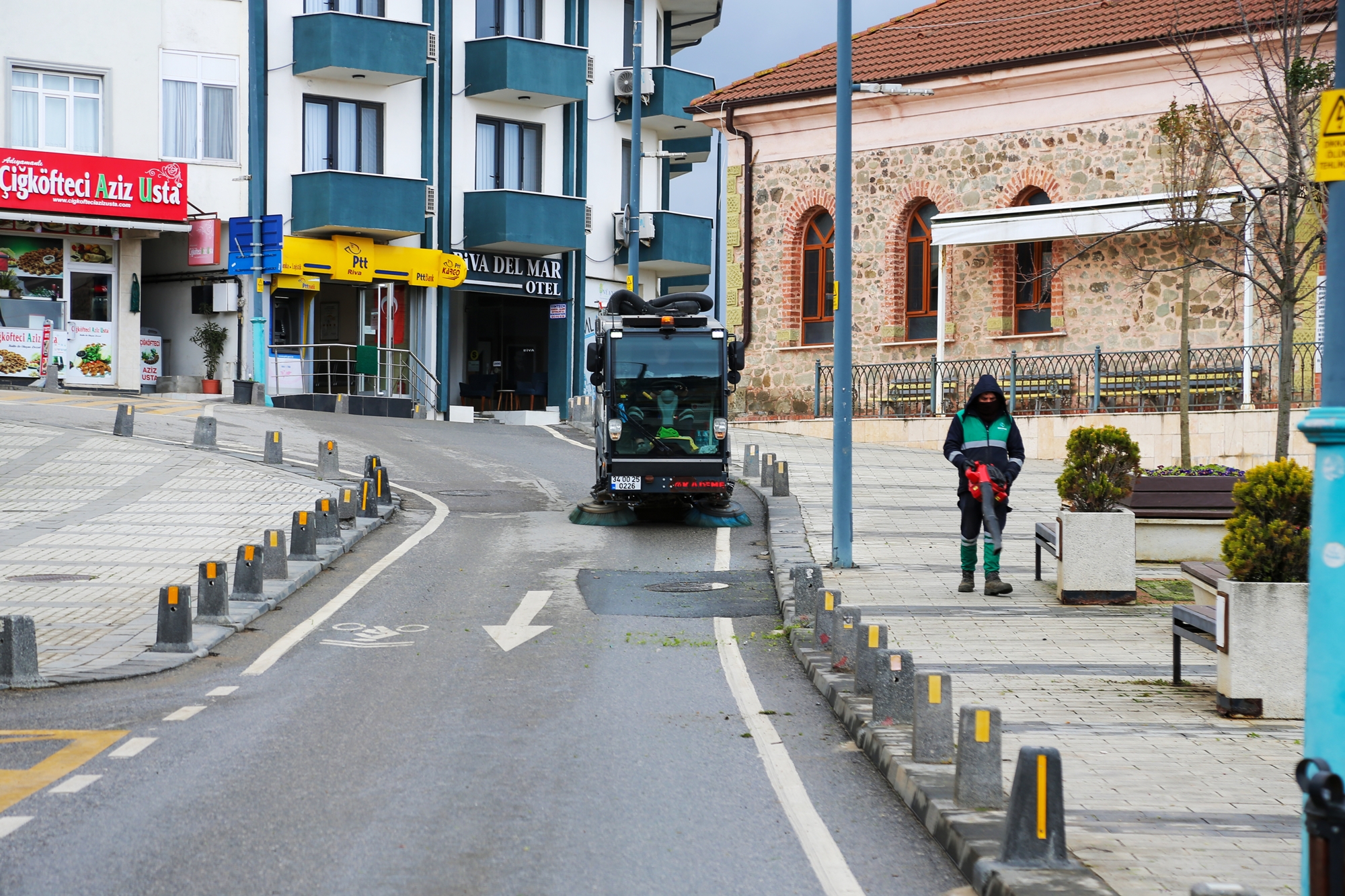ekipleri Riva’nın cadde ve sokakları özel araçlarla yıkanırken, çöp