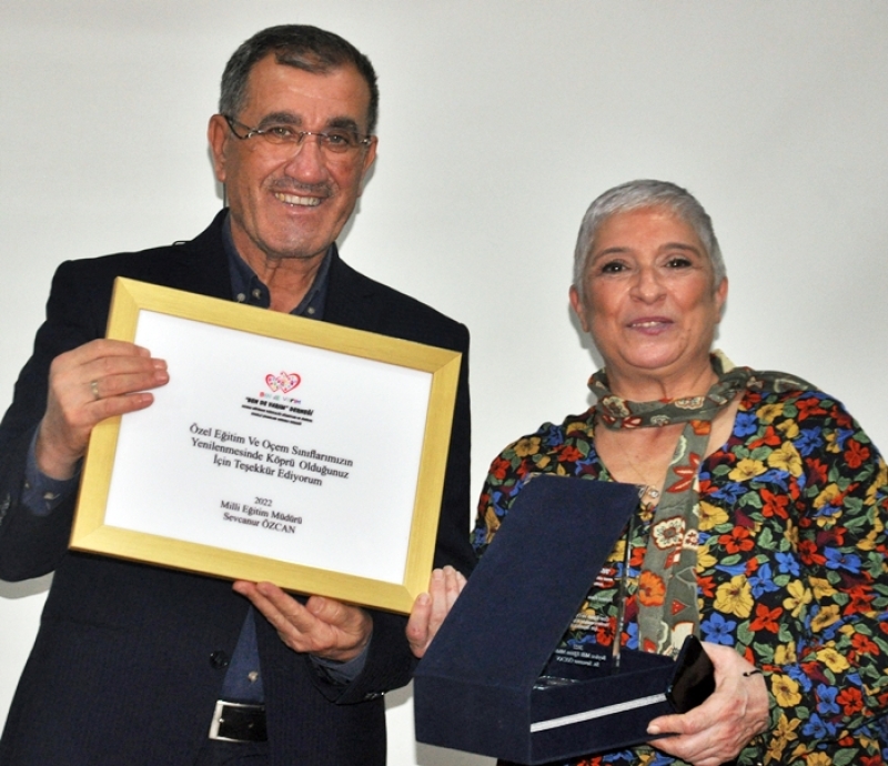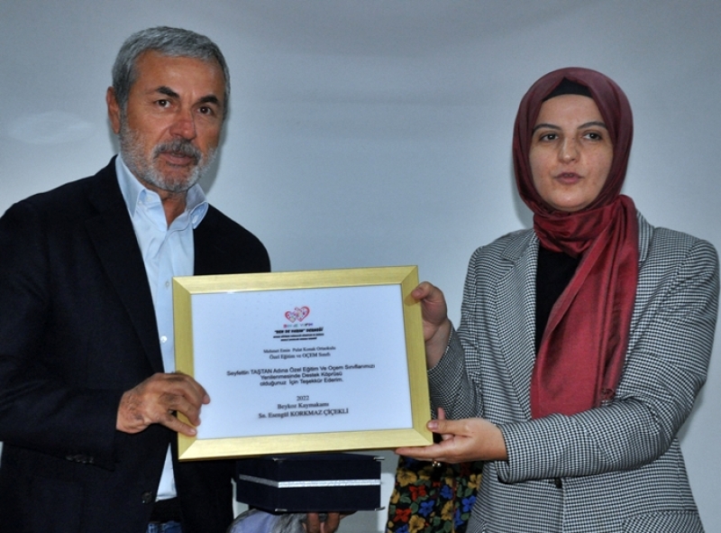 Çiçekli özel eğitim sınıfının bağışçısı Av. Birsen Taştan’a Teşekkür Belgesi ve