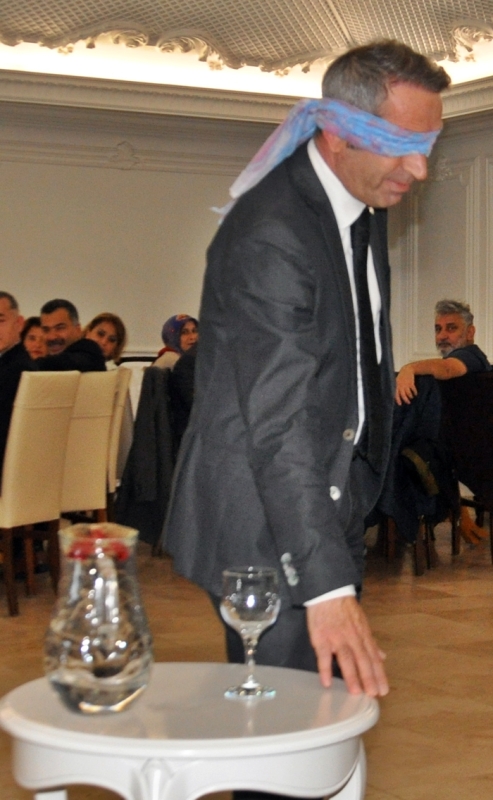 bağlı içen sürahiden bardağa su doldurması istendi.