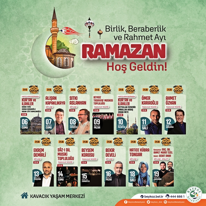 On bir ayın sultanı Ramazan Beykoz ve Hatay’da kardeşlik ve dayanışma iklimiyle yaşanacak. Beykozlular sahilde kurulacak “Ramazan Çadırı”, “Kavacık Yaşam Merkezi” ve “Millet Sofrası”nda ağırlanırken, kardeş şehir Kırıkhan’da her akşam iftar yemeği ikramı, çocuk eğlenceleri ve söyleşiler yer alacak.