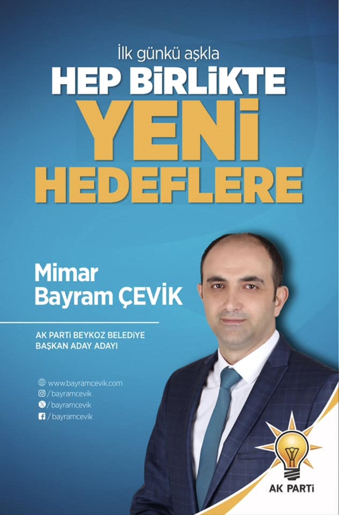 Mart 2024’te gerçekleşecek Yerel seçimler öncesinde AK Parti’de Belediye Aday Adaylık süreci başlarken, geçmiş dönem AK Parti Beykoz Belediye Meclis Üyesi, 31 Mart 2019 Beykoz Belediye Başkan Aday Adayı ve Mimar Bayram Çevik, AK Parti Beykoz’da Aday Adaylığını kamuoyu ile paylaşan ilk kişi oldu.